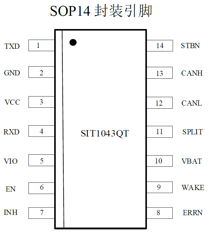 圖2:SIT1043Q的內部系統框圖與封裝引腳功能圖