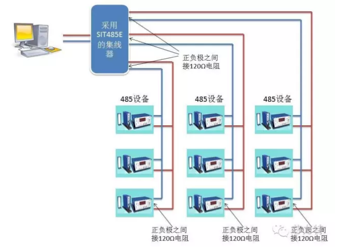 菊花鏈拓撲結構是RS485總線布線的標準及規范,是TIA等組織推薦使用的RS485總線拓撲結構。