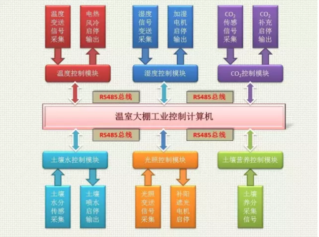 利用RS-485總線的構成的分布式數據采集系統,具有連接線路簡單,設備成本低等優點,系統對現場監測節點實現對溫度、濕度、CO2濃度等數據測量與顯示,并將環境因子控制在作物生長的最佳范圍。